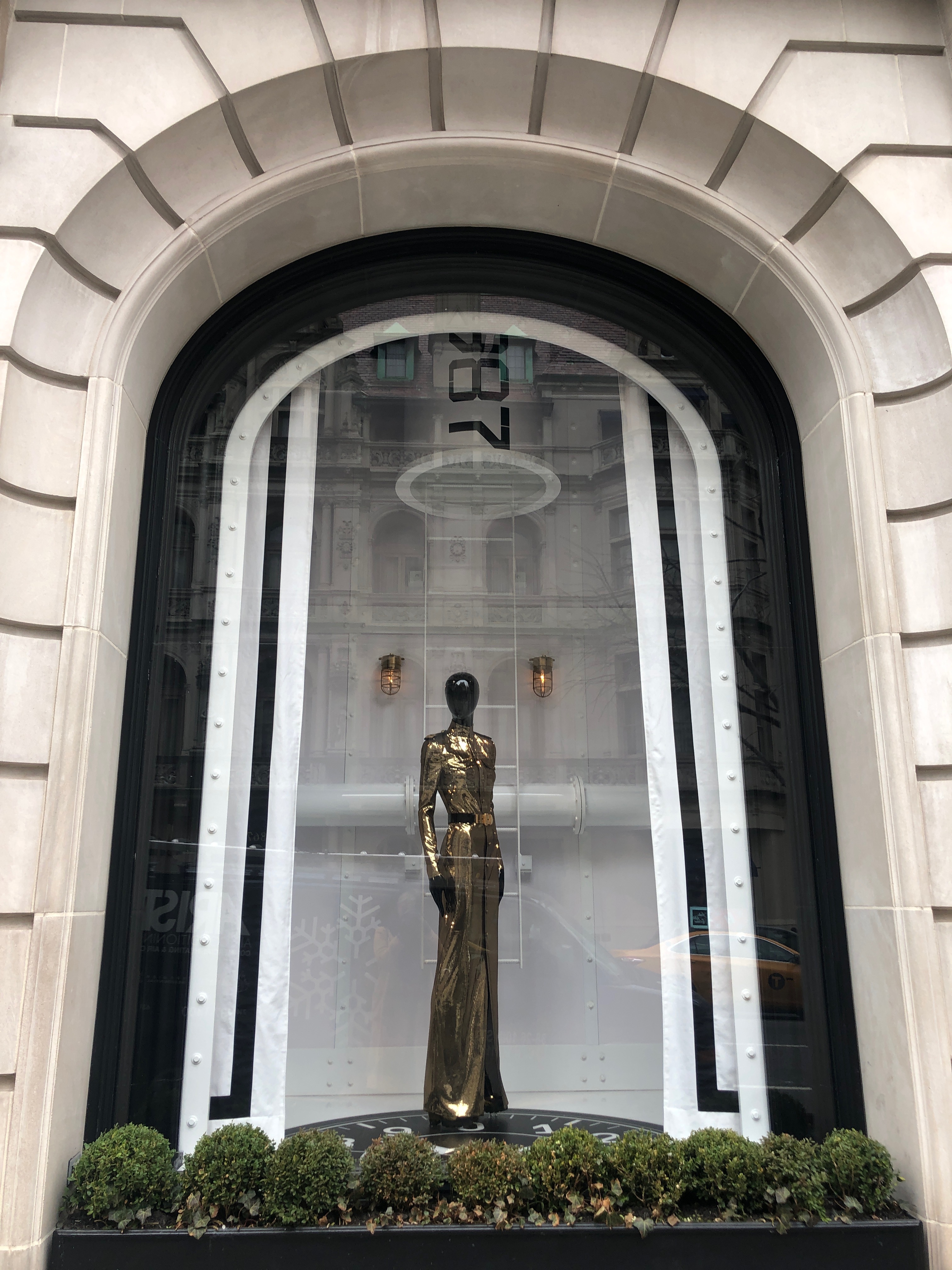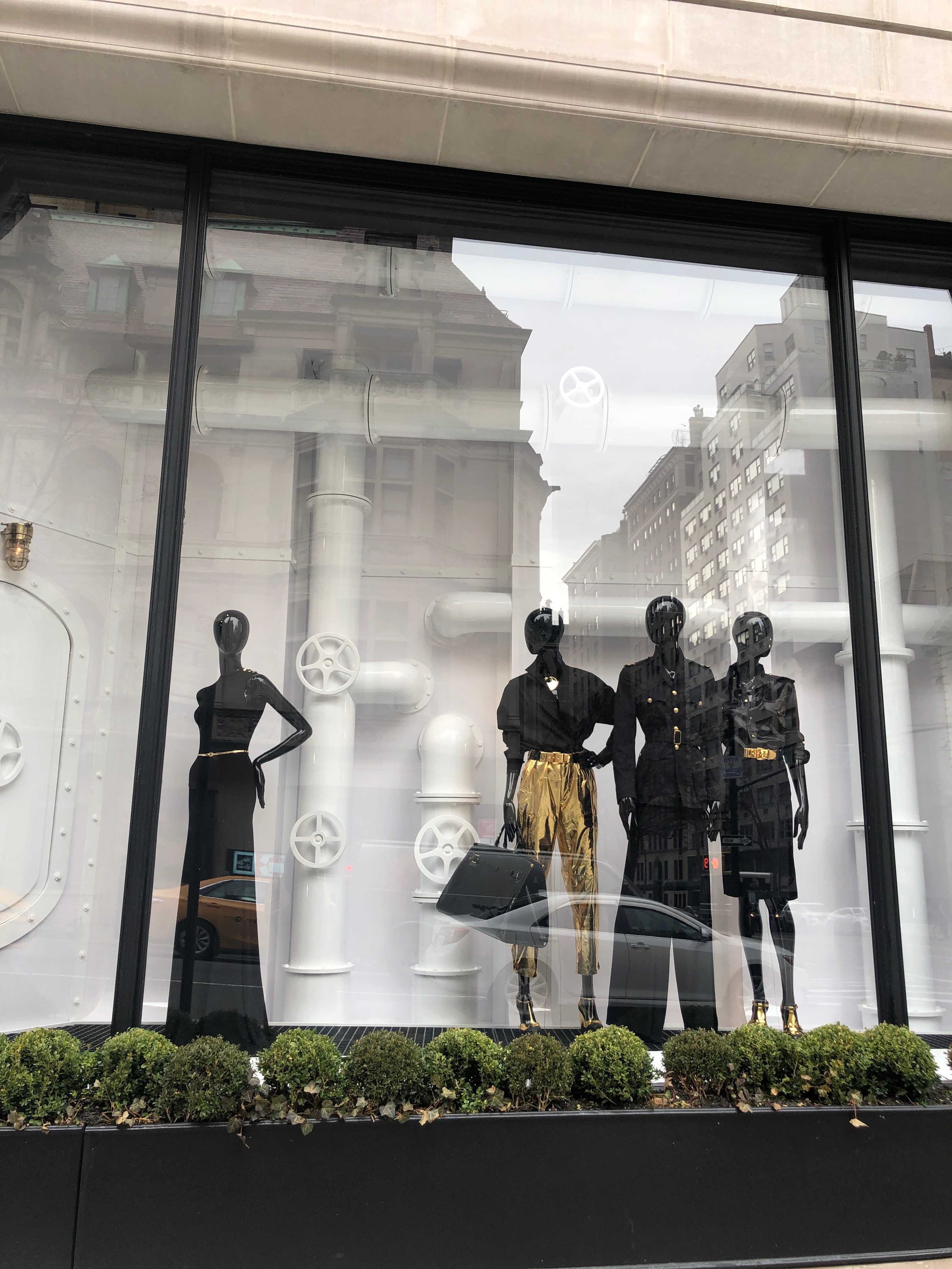 This is the visual display for the Ralph Lauren Madison Ave store. Unlike balenciaga its very classic and timeless with a hint of futurism and shiny gold fabric.